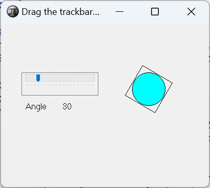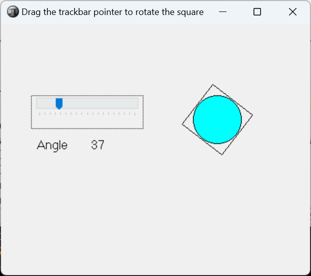 The other logic is to determine whether the cannonball has hit the target, which is moveable by a trackbar. “Collision detection” is a common (and also complicated) problem in most animated graphics apps. The implementation is checking if the distance from the center of the cannonball is less than its radius from the left or top edges of the target after each move or hit. The problem is that, for low angles, a horizontal movement may take the ball from one side of the target to the other side in one loop increment, so we never know that we went right through it!