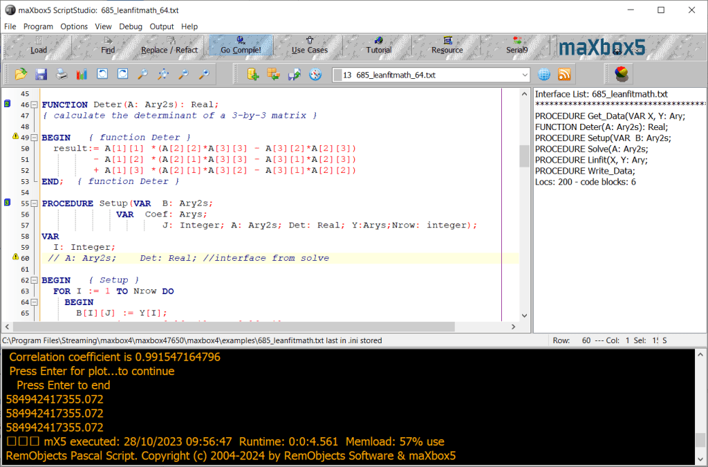 Unit UMatrix is the unit from the old Borland Turbo Pascal Numeric Toolbox which contains the GuussianElimination procedure used here among other matrix operations.
