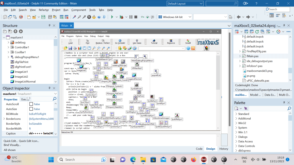 One of my friends on Delphi for Fun gave me the idea to port the executable to a script for windows 11 as a preparation for the 64bitbox.