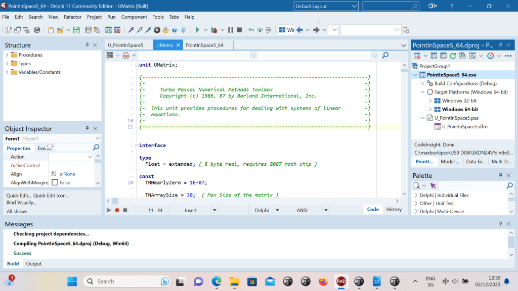 In Delphi or maXbox, I can include a folder’s source code by adding it to the project Search Path or define as an include file, or adding it to the Library Path. The Search Path applies for the UMatrix.pas only to the current project, while the Library Path applies to any project opened with the IDE.