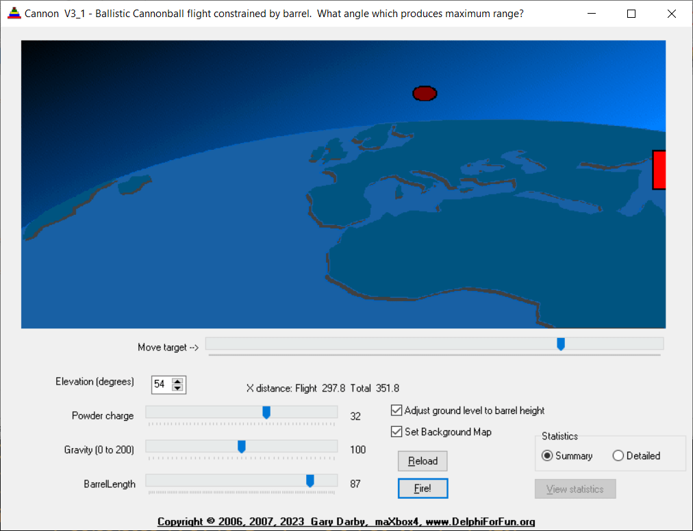 Here’s an animated graphics program that builds on the bouncing ball program by adding some horizontal movement to the ball, drawing a primitive cannon that you can aim, a target that can be moved and an adjustable powder charge to give the initial push to the ball. Cannonball is also the project-name of the 64bit migrationContinue reading “Cannonball”